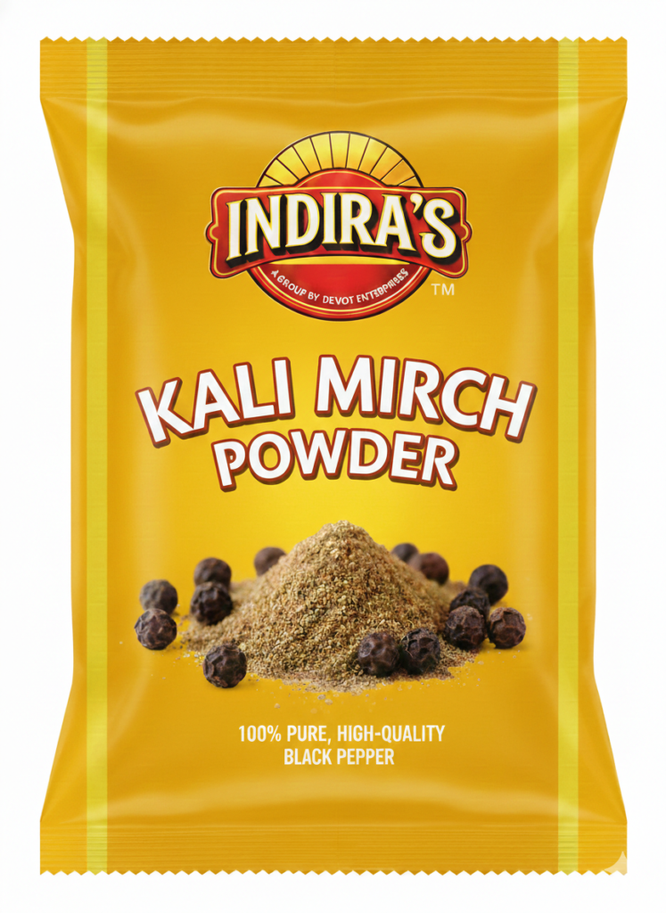 Indiras Kali Mirchi Powder is crafted from premium-quality black peppercorns, carefully cleaned and finely ground to retain their natural pungency, sharp aroma, and warm heat. Known as the “King of Spices,” black pepper adds depth and bold flavour to a wide range of dishes.