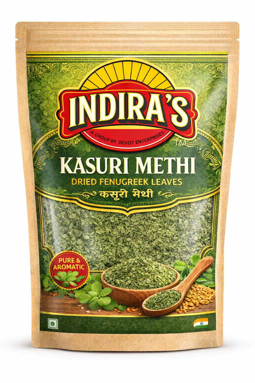 Indira’s Kasuri Methi is premium-quality dried fenugreek leaves, carefully processed to retain their natural aroma, flavor, and freshness. Known for their distinctive, slightly bitter taste and rich fragrance, kasuri methi adds a unique depth and authentic restaurant-style touch to Indian dishes.