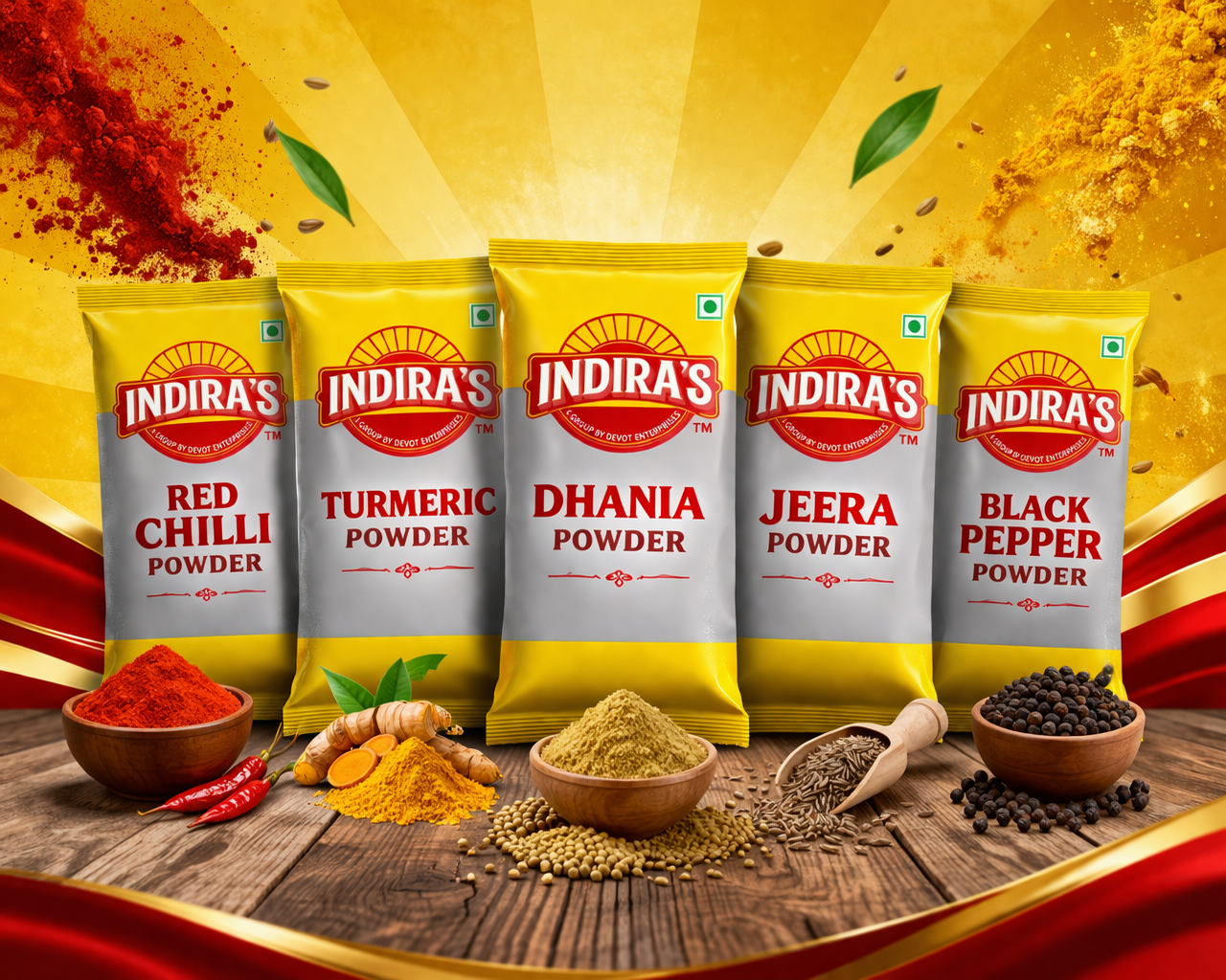 Bring home the authentic taste of traditional Indian cooking with INDIRA’S Whole Spices Powder Combo, crafted from carefully selected, high-quality whole spices. This combo includes essential kitchen staples—Jeera (Cumin), Dhania (Coriander), Black Pepper, Red Chilli, and Turmeric Powders—each finely ground to preserve natural aroma, flavor, and richness.